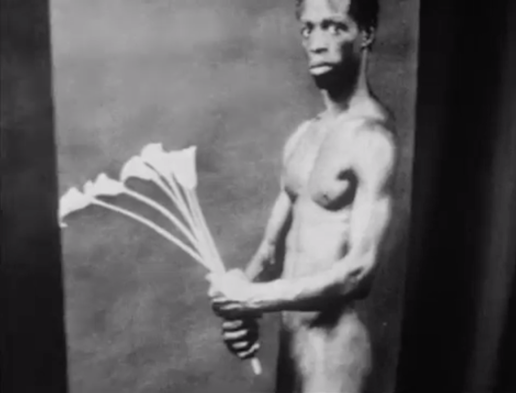 Looking for Langston also discusses the intrusion of white queer men into black queer spaces, and the problematic power relationship between white and black queer men. In his essay, ‘All the Sad Young Men: Whiteness as Melancholic Haunting in Black Queer Independent Film’, Samuel Park discusses three films, including Looking for Langston, and the narratives around interracial desire. He explains that, ‘Looking for Langston… function[s] as [a] fascinating case [study] of the haunting, repressed nature of whiteness in contemporary black queer independent film’ (Park, 2011). Park highlights a specific part of the film, where a black man looks to gain the attention of a white man, but is rejected, and ‘appears to internalise this rejection’ (figures three – five) (Park, 2011). Park goes on to explain that the racial power dynamics within queer spaces means that black men seek the approval of white men. Problematically, ‘visibility in queer culture [favours] white bodies’, which means that queer men of colour are outcast from the ideal (Park, 2011). Black queer men, with intersectional marginalised identities as black and gay, are pushed far from the hegemonic ideal. As ‘one’s status as a man is never secure but in perpetual need of validation by other men’, black queer men seek validation from the nearest hegemonic ideal – white gay men (Alsop et al, 2002). While Julien struggles to fully identify this issue in Looking for Langston, it is still an important underlying theme. The film does discuss how ‘in the gay marketplace of desire… queers of colour… are frequently thought to exist for the sexual service and pleasure of economically advantaged white men’, and this is evident in Mapplethorpe’s images of black men (Park, 2011). They show the dominance of the white queer gaze, and, as Alsop explains, ‘white gay men, as with white men of any sexual orientation, benefit from white cultural dominance’ (Alsop et al, 2002). Mapplethorpe has used his power as a white man to push certain stereotypes about black men, and presented these black bodies in a way that show they exist for his pleasure and desire.