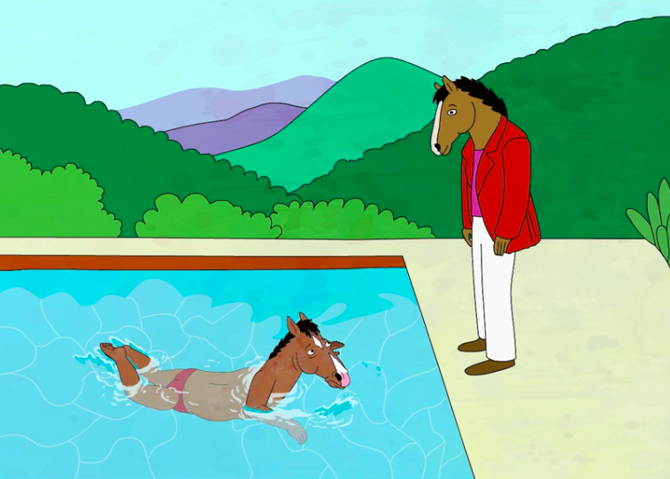 The creators made it explicit from three minutes into the first episode that Bojack was going to end up drowning in his swimming pool – and he eventually did in the masterful penultimate episode ‘The View from Halfway Down’. The opening sequence to the show is brilliant and unskippable, and in this sequence, Bojack always ends up in the swimming pool. Every episode, the creators show us that Bojack is inevitably going to end up in the pool.